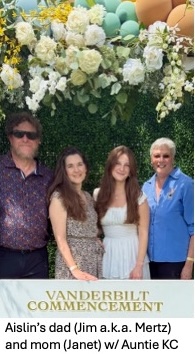With May came graduation season as those homeschooled California kids showed what they could do. Aislin, then 19, was set to graduate cum laude from Vanderbilt. That drive to Nashville and back was punctuated by stops to see Kathy’s Uncle Chuck in Cincinnati, Mark and Shellie Garman in Louisville, and June (our late friend Sam’s widow) who came over from Loudon to spend time with us in a cabin in Maryville.