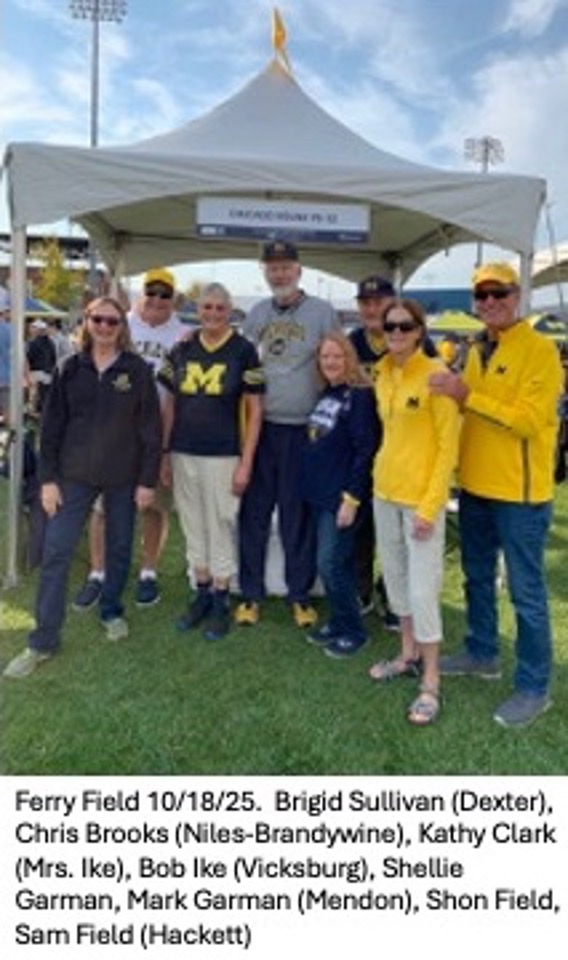 Tree Town wasn’t heaven – studying was expected – but came close, establishing lifelong pangs. Nearly everyone here is from elsewhere. True “townies” can name their elementary school. Counting 47 of 55 years here, occupying our ’58-built house since ’85, Kathy and I are seniormost members of this 13-house neighborhood, the two other longer-residing families both second generation. Still an Ann Arbor outsider, like my wife, born of Michigan grads (in Ohio), faithful football season ticket holder since ’64, recipient of 3 post-graduate UofM degrees, and 28 years of University paychecks. 44 years of Tree Town living for her, interrupted by 4 years in D.C., but that’s another story.