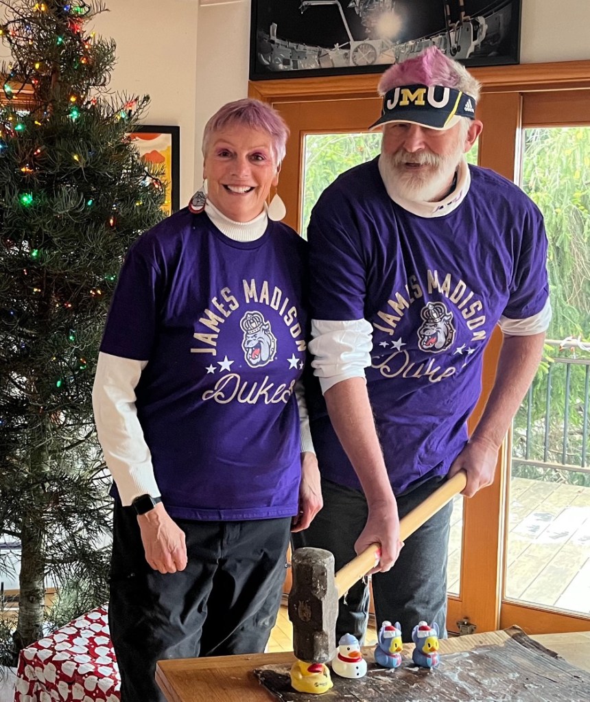 Since then, it’s been surprisingly quiet. The Ohio State game was in there, but not a source of joy this year. Of course, we’ve been following the coaching drama. As I type this, word is Kyle Willingham is the guy. As the playoffs approached, we thought we might have a dog in the fight, after all. My mom’s brother settled in Arlington and had 10 kids. Several went to James Madison, and some still live in Harrisonburg. Their mascot, Duke, is a bulldog! So bulldogs from a ‘burg sure sound like my teen years! They drew the Oregon Ducks first round. Kathy and I demonstrated what the Dukes should do to the Ducks.