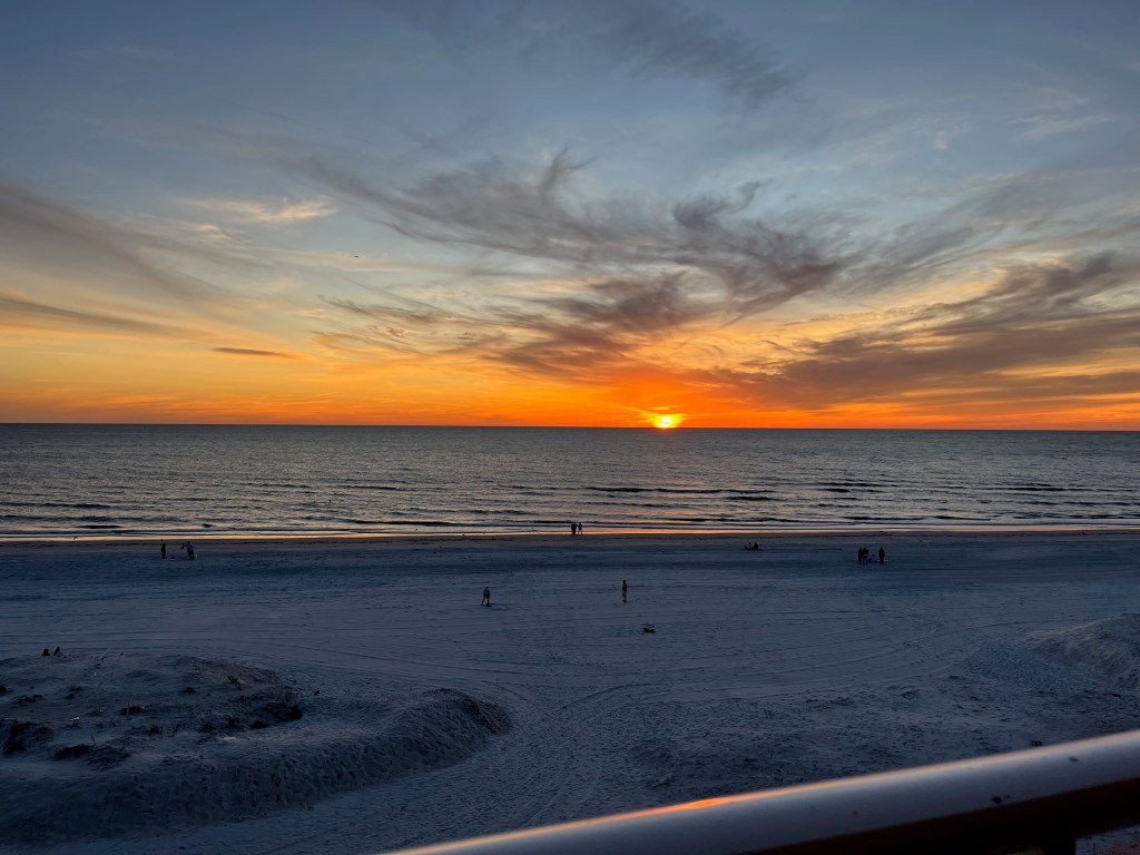 But what about this year almost past? Just like last year, we started by cheering our Wolverines on to victory. This time the victim was Alabama, and the defeat compelled their legendary coach Nick Saban to retire. We were there in Raymond James Stadium in Tampa, with our friends Mark and Shellie, Mark a dorm mate of mine, where we came from the dinkiest towns of all. Tampa is near Madeira Beach, our preferred Florida hangout. Milton buried our usual house, but we found a spot down the beach, and the views were similar.