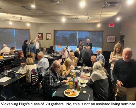 Ann Arbor was o.k. Resisting the siren song of hippiedom, hearing a lot of great music, I shed my law flirtation and dove into the math and science that was my strength. Worked! On to med school! “Where you from?”, innocent conversational opening back then, not a “microaggression”, meant students quickly learned each other’s origins. Not everyone was from them ritzy Dee-troit suburbs. Some even came from a Wolverine Conference town! An origin sufficiently unique beget nicknames. Yes, I was called “Vicksburg” a few times. It coulda been worse. One guy on our floor from Marlette (2020 census pop’n 1855, in the Thumb), tried to tell us that his town was actually a big place. Henceforth, he was “Big City”.