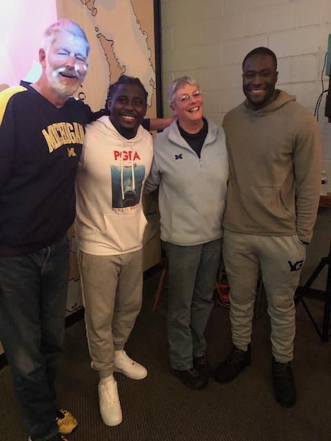 Yet I still remember sitting in the end zone of MI stadium as a freshman, back before they always filled it, sucking back Boone’s Farm, and cursing Bo for playing such boring football. Run, run, run. Oooh, boy. You remember Woody’s dictum, who of course was Bo’s mentor, “There are three things that can happen when you throw the ball, and two of them are bad”. I later got to meet Billy Taylor, who was by then Dr. Billy Taylor https://www.touchdownbillytaylor.com/, who was the guy poundin’ the pigskin forward on all those runs (1297 yards on 249 attempts for a 5.2 per carry average, 3 time All-American, finishing second to Tom Harmon in career touchdowns with 32 and in points with 194), and winning as a consequence, on that great ’71 team, undefeated in the regular season, outscoring opponents 421-83. Damn that future orthopod Don Bunce and his Stanford Indians. Our QB was future dentist Tom Slade. Field goal with 16 seconds left, 13-12. Rod Garcia kicked it. Wouldn’t have won NC anyway, as #1 Nebraska was playing #2 Alabama in the Orange Bowl that night. Huskers won. Two seasons earlier it was a Wolverine Conference guy – South Haven’s Don Morehead – QBing that ’69 team that beat Woody. I don’t know if Vicksburg ever beat him. We seldom beat SH in anything those days. Anyway, Bo eventually discovered the forward pass, and things got more interesting, especially when Harbaugh was flinging it. Of course, you can open things up too much. Look what happened with Rich Rod. He did have some fun players. See us here with his two best QBs a couple years ago at Wolverine State Brewing. Devin did a show Monday after each game, breaking down game film. He pulled no punches. Sometimes his friend Denard would join him. Yes, Kathy’s at least as tall as Denard, just not quite as fast.