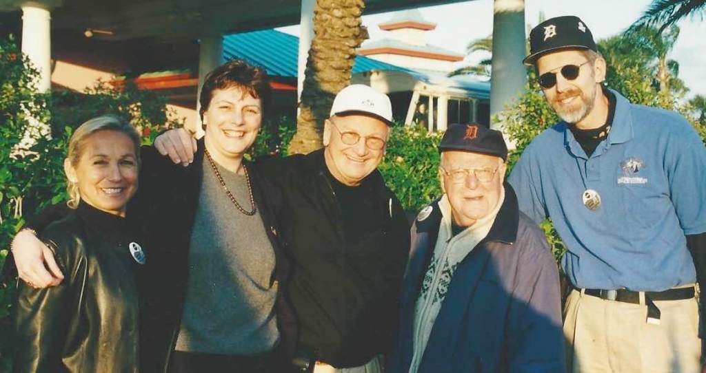 Left to right: Sue Layne, Jim Northam, Barb Northam (died two years ago), Kathy behind her in the M hat, Forrest (Steve Layne), me, Rod Taft, and Chris Taft. Of course we won.