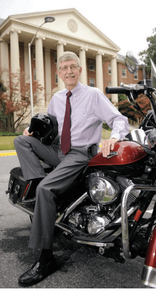 * see Francis Collins, still technically a Professor of Medicine at U of M, where he discovered the genes for cystic fibrosis, neurofibromatosis, and Huntington’s chorea (which claimed Woody Guthrie), before leaving to head the Human Genome Project then be appointed by Obama to head the National Institutes of Health, as he mounts his red Harley to take him on the 15 minute commute from Chevy Chase to his office at the NIH in Bethesda. Oh, and he plays the guitar, sometimes in a rock band, and sings with opera singers. He is a devout Christian.