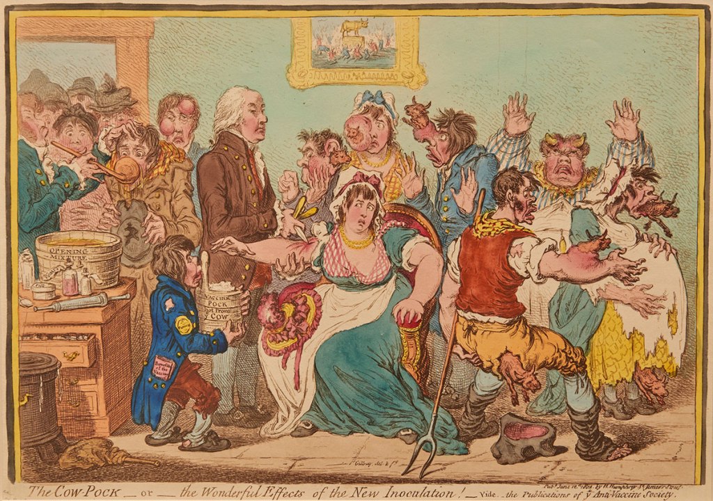 A prodigy who apprenticed himself to a surgeon at age 13 and there first heard the tale of a milkmaid who’d contracted cowpox and considered herself protected from smallpox, he took a while to make something of this lesson. We know now both cowpox and smallpox are caused by closely related viruses of the variola family. Throughout the 18th century, inoculation of swabs from cowpox sores to healthy people in order to ward off smallpox, called variolization, had been practiced in various parts of Europe and even in the Royal Court (1). But Dr. Jenner was the first to do a proper study and write it up, so he gets credit (2). If you click to the source, you can see he prefaces his report with a letter to the King. Beating smallpox was a big deal.