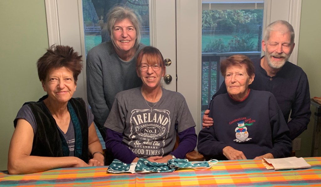 Seated: Di, Amy (“Marge”, who died suddenly in May), Mom. Standing: Jolene (“Ish”), me