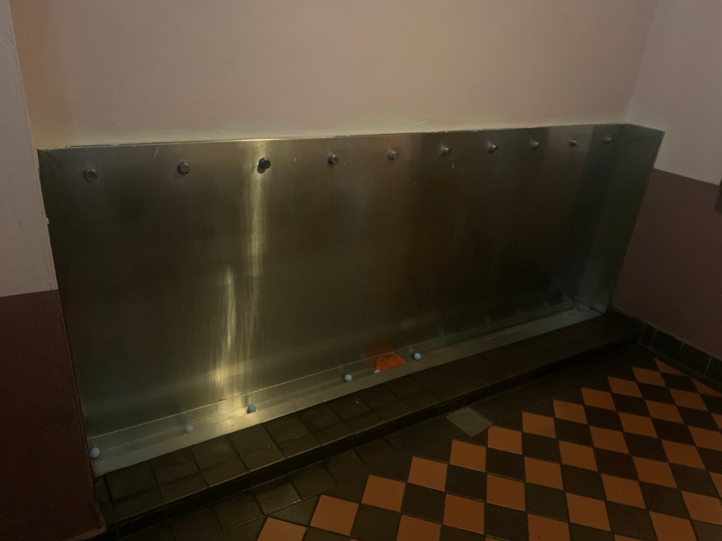 Drinking like that, such seats can’t be occupied in eternity. The road back in the pub, as it often does in this country, brought wonder. Again the genius Irish engineers had constructed a gleaming temple to men’s needs. I haven’t felt this satisfied since they took the troughs out of the men’s rooms at Michigan Stadium.
