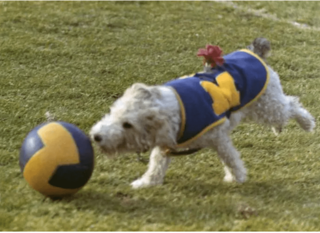If they have descendants with similar ball skills, one of them would be a refreshing addition to today’s Big House afternoons. If you’ve been paying attention, you’d have recognized that Jimmy’s boys – until last Saturday – were playing pretty boring football: pound the ball then throttle the opposition. Harkens back to those early 70s teams of Jimmy’s mentor, Bo. We hippies sitting in the end zone with our bottles of Boone’s Farm used to hoot and holler, sometimes even boo, to have Bo open it up a bit. Instead, Billy Taylor (now Dr. Taylor (1)) would run it into the line 35 times a game. Like Jimmy’s squad, they won. ‘71’s team went undefeated till the Rose Bowl. So it was into this tedium that Whiskey’s owner, who had snuck the dog into the stadium under a blanket, would release this little terrier onto the field along with a soccer ball. Whiskey had a nose for the ball and would push the thing length of the field. Touchdown! Some fan on that end would throw the ball the other way and there Whiskey would go again.