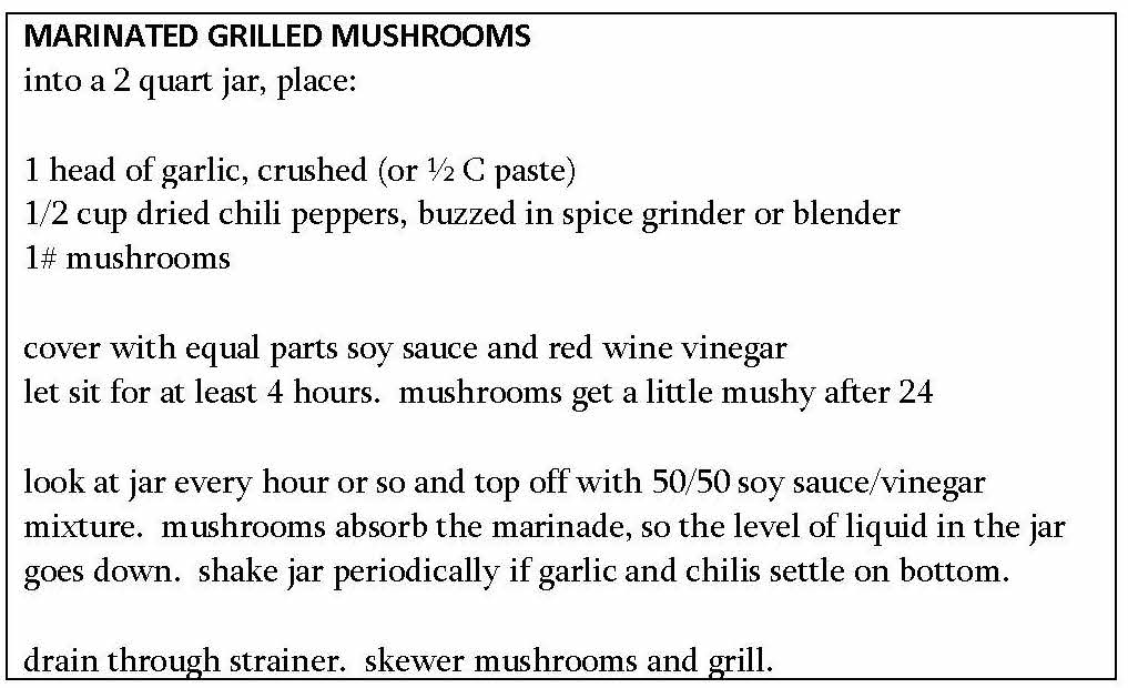 Then there’s the marinated mushrooms, so easy and good and always a winner (7).