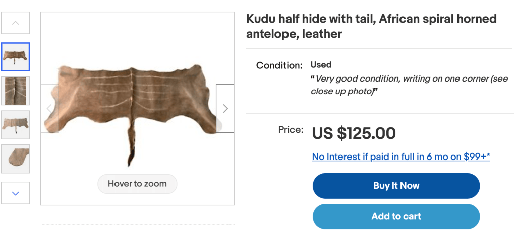One of the potential repairers had me chasing my own leather “half-hides”, which would be necessary to replace the seat. He’d excitedly found some on e-Bay that might work, but in the color I wanted, none were available in that size. But e-Bay does offer some interesting possibilities.