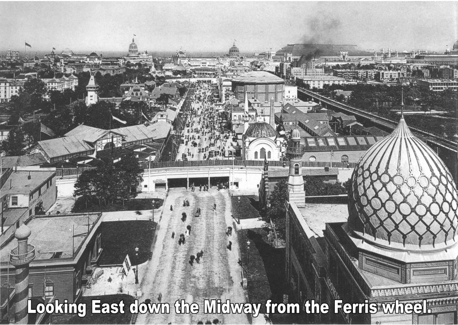If you know a little French, you’ll recognize “plaisance” as “a place for boating”. So, where’s the water? When the city fathers conceived of a park here in the late 1860s, they hired Olmsted and Vaux, designers of NYC’s Central Park (13). They saw the proximity to Lake Michigan to be connected with lagoons up and down. A canal would need to be constructed but the Great Fire of 1871 intervened, halting all progress. The land lay dormant until planning started for the 1893 Columbia Exposition and planners agreed this would be a great spot to put everything. So, as you walk along the Midway these days, imagine it teeming with fairgoers, amusements, restaurants, foreign villages, ethnological exhibits, and the world’s first Ferris wheel.