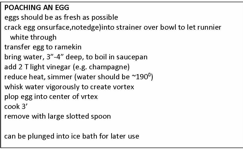As for breakfast, it helps if you can poach an egg old style. Set those passive “egg poachers” you might have aside and pick up a whisk. You can salvage those egg whites going through a strainer by collecting them in a dish sprayed with some non-stick (I have a garlic spray I prefer) then nuking the collection for a minute. More protein! But here are those simple instructions about how to poach an egg.
