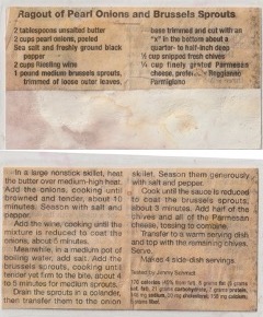 Sprouts. The Ikes loved these little cabbages. Once I discovered the wonders of garlic and chicken stock, they became our favorites, too. Since we had some purple pearl onions lying around – such great fun to prep – the sprouts came out this way this TG.