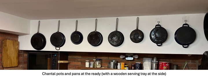 A side wall found a home for roasting pans and such that had languished in cabinets, and utensils in drawers.