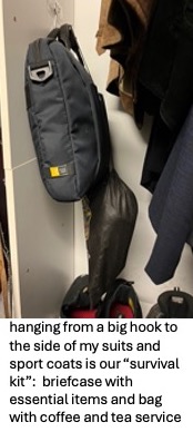 That closet was no stranger to hooks, as there was already one for my string ties and another for my heart monitor, with discretely placed hooks coming for zip up storage bags once I get a few more sport coats out of the way.