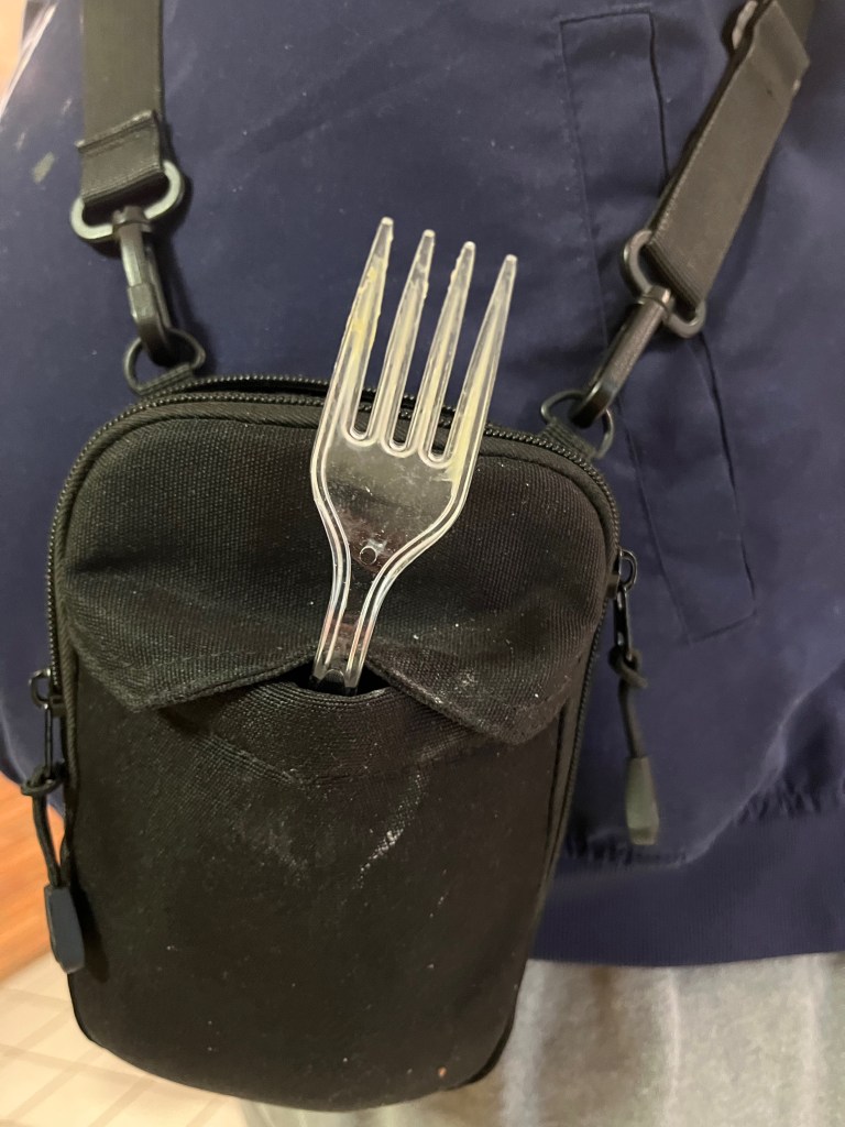 I don’t know about the flannel shirts, but the fork was also an homage to patriarch Dick, who wanted his boys always to be ready. I felt a little left out in my pocket-less UC Santa Cruz banana slugs sweatshirt. Nephew Pete noticed the shoulder pouch I was wearing, with a front pocket, and suggested I stick a fork there. I did, and immediately felt closer to that crowd.