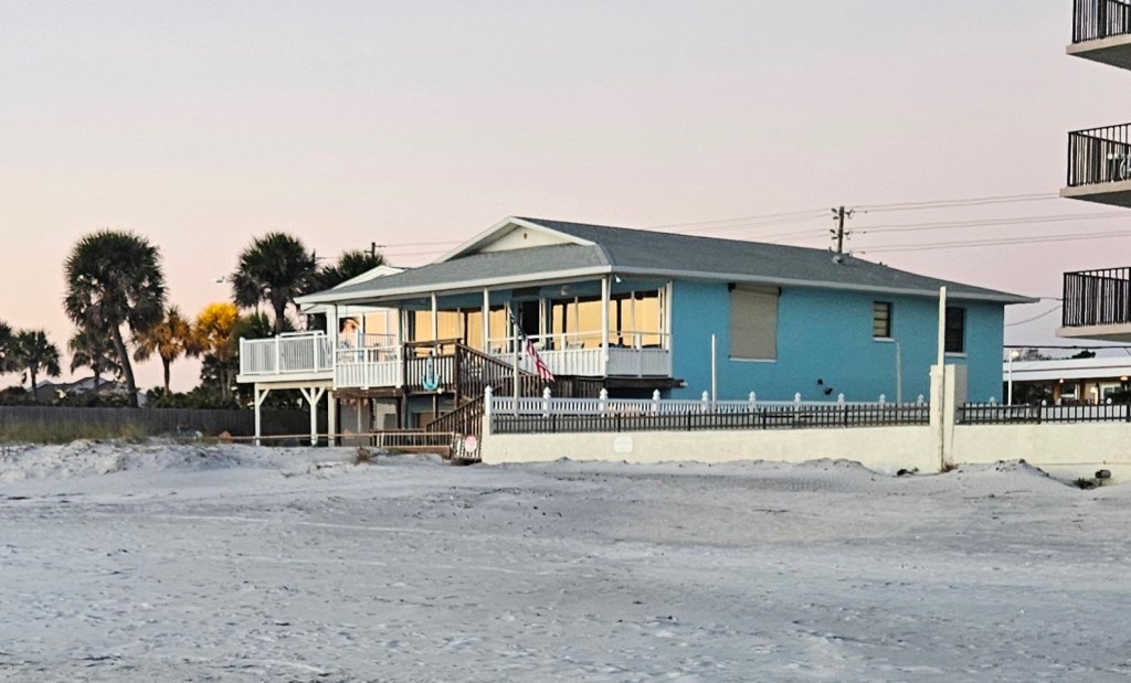 Well, that was a trip! As we pulled into our driveway Friday, we’d logged 2,926 road miles (not including local driving) – or almost 39 hours in Michigan units – touching down in 10 cities and towns, and sleeping 8 nights in beds not our own, 7 of those one-nighters. A straight shot down I-75 to Madeira Beach would have been 1193 miles (17 hours 11 minutes), only 2,386 miles round trip, but where’s the fun in that? The notion of escaping to Florida for a portion of the winter came to us a decade or so ago when we realized that my having a brother in Clearwater was a good excuse to visit there. Wishing to be close to the water, we booked our first places in pricey, crowded Clearwater Beach. Anything right on the Gulf was out of our range, but we found a place on Clearwater Bay on the other side of the peninsula that proved very adequate. The expansive Gulf Beach was a short walk west, with its great open bars and restaurants. A short drive up the spit got us to Honeymoon Island, and a fun ride on the water taxi took us to Dunedin, winter home of the Blue Jays, hometown of Gov. DeSantis, with a great beer trail (1). We took Gulf Boulevard south to explore the rest of the Pinellas Spit. After 25 minutes of driving past luxury waterfront homes and high rises, we came upon funky Madeira Beach. Any place with a bar named “Saltwater Hippie” is our kind of place (2). Mad Beach would be our winter touchdown spot thereafter. The best places we could find on AirBnB were “steps to the beach”, but it was tantalizing to be so close to that Gulf but not on it. One afternoon, Kathy went knocking on doors and discovered the blue frame house we now rent through VRBO.