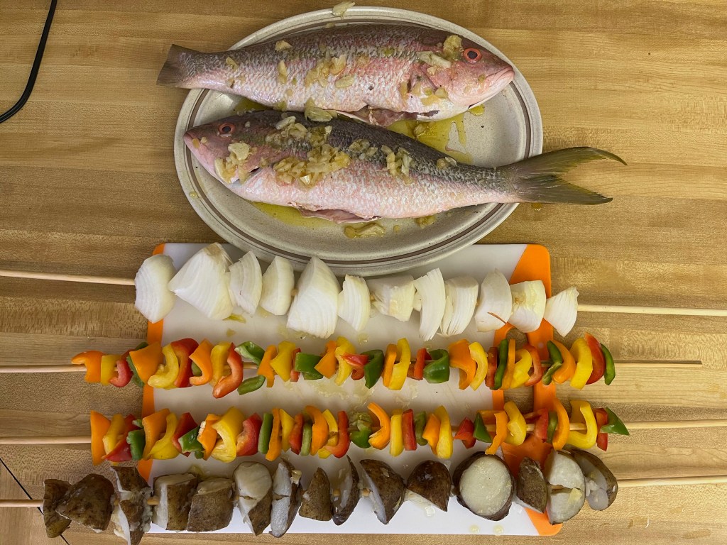 Too bad, as it was set to be spectacular, some red snapper, fresh out of the Gulf (we couldn’t get grouper) plus some sides.