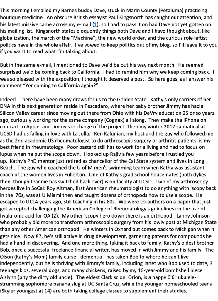 Additional players in this trip were to have come from Albuquerque. Carol, my Grandpa Ike’s oldest niece, my oldest cousin, settled there with husband John after stretches in American Samoa and Texas. In my attempts to reopen our relationship, I misinterpreted that a Grand Rapids girl brought up in the Christian Reformed Church and living much of her adult life in Texas would turn out to be a sympatico conservative like me. Ah, no. She’s busy examining her “white privilege”. And on COVID it was even worse. She could not fathom how someone – regardless of my virology, immunology, and medicine background – could be so at odds with what the “experts” were saying, all obviously working tirelessly for our greater benefit. Her daughter, a “journalist”, was aghast at my neanderthal opinions from the get go, wondering if I was so smart, why wasn’t I working for Fauci? Tenure at a top notch international medical center wasn’t enough. It got to be too much for Carole. When she took to heaping insults, I said “enough” and she seemed relieved. I’m sure she has some great pictures of Grandpa Ike. Maybe I’ll see them someday. I hope it’s not after her funeral.