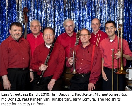If you want to hear them live, most members of these bands continue on as members of the Easy Street Band (now led by trombonist Terry Kimura, who was a shaky, nervous, skinny music student when Dapogny first put him in front of the band). He’s gained some weight since, and is very much in charge, with a sense of humor we didn’t appreciate back in the day. He maintains the band’s very active Facebook page (10).Phil Ogilvie’s Rhythm Kings (Phil is fictional, but theband says he lives in Florida) show up on Sunday afternoons to play their 20’s and 30s repertoire. Chris Smith, pushing their rhythm section with his tuba, leads the band now . Mondays are traditionally the evening where jazz musicians stretch out, taking a break from theirreular gigs, and in AA they can do that with the Paul Keller Orchestra, a full powered big band (11). Paul is the Godfather of AA jazz, responsible for many young careers when he’s not touring as Diane Kraal’s bassist.