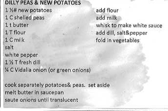 Here’s the (well-used) recipe for peas and new potatoes. It helps that dill is coming up fresh about the same time.