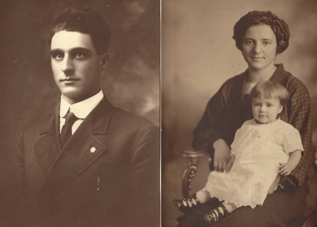 Here’s my Grandpa and Grandma Slater with my mother, Marion, early 1920s. Grandpa’s fierce visage mellowed with time to yield the smiling friendly face everybody loved.